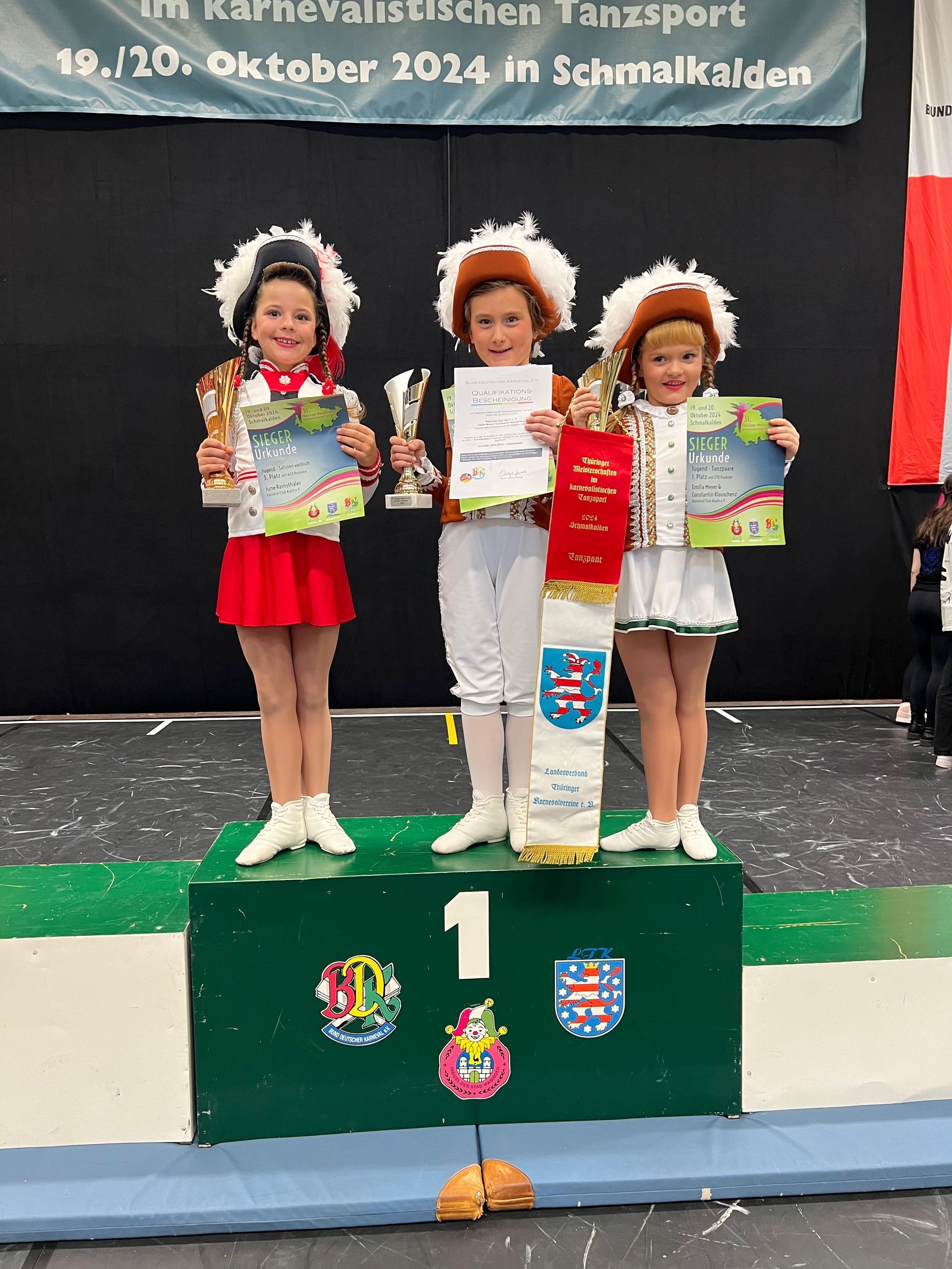 mniedlichen Tanz konnte sie eine ordentliche Schippe im Vergleich zum vergangenen Jahr drauflegen und erreichte Platz 8 von 18 Mariechen. Als letzte unserer Mariechen betrat June die Bühne. Sie glänzte mit einem zackigen Tanz und anspruchsvollen Schwierigkeiten. Verglichen zur letzten Saison steigerte sie sich um über 20 Punkte. Juni ist THÜRINGER TRIZEMEISTERIN 2024!